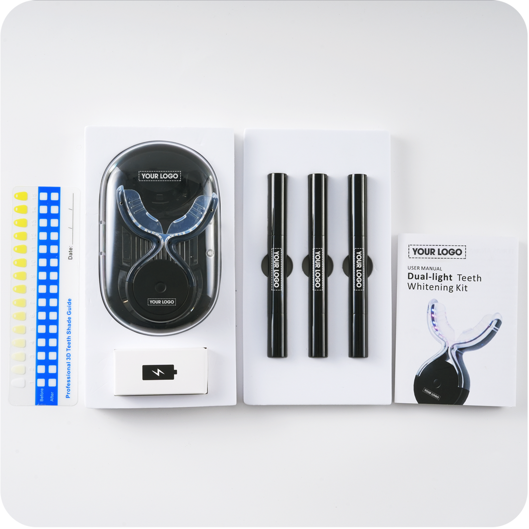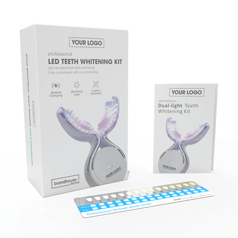 The ProSmile Custom LED Whitening Kit includes everything you need for a professional-grade teeth whitening experience at home, all beautifully branded with your dentist's logo. Here's what you'll find inside: